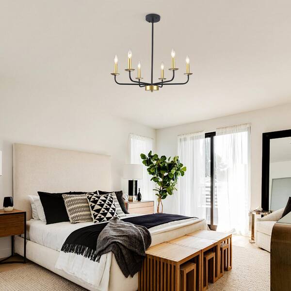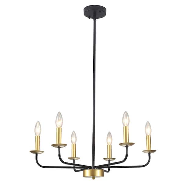 6-Light Black & Gold Rustic Traditional Linear Chandelier for Bedroom with No Bulbs Included