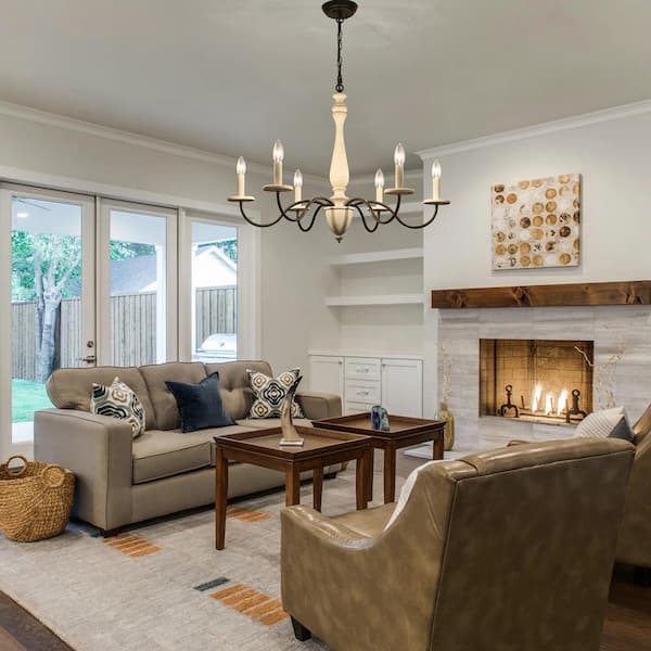 6 Light Black/Retro White Rustic Farmhouse Chandelier Light for Bedroom Foyer Living Room