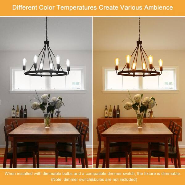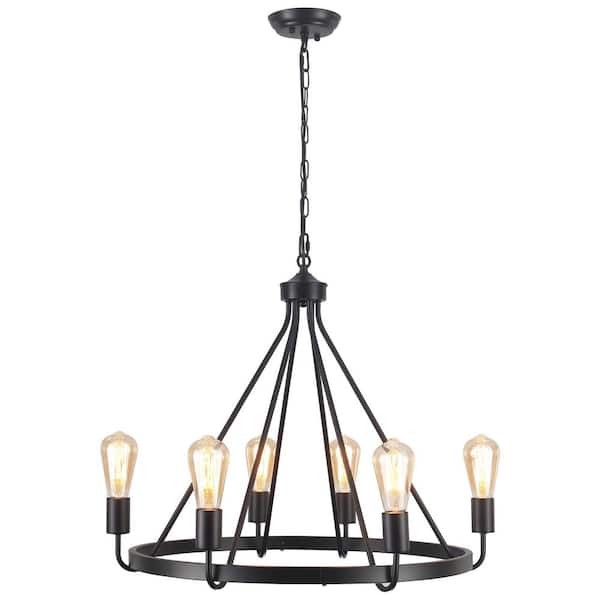 6-Light Black Traditional Chandelier Wagon Wheel Chandelier for Kitchen Island