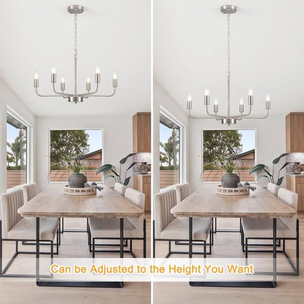 6-Light Nickel Farmhouse Candle Linear Chandelier for Living Room with No Bulbs Included