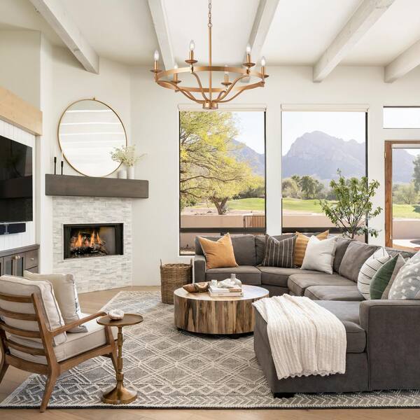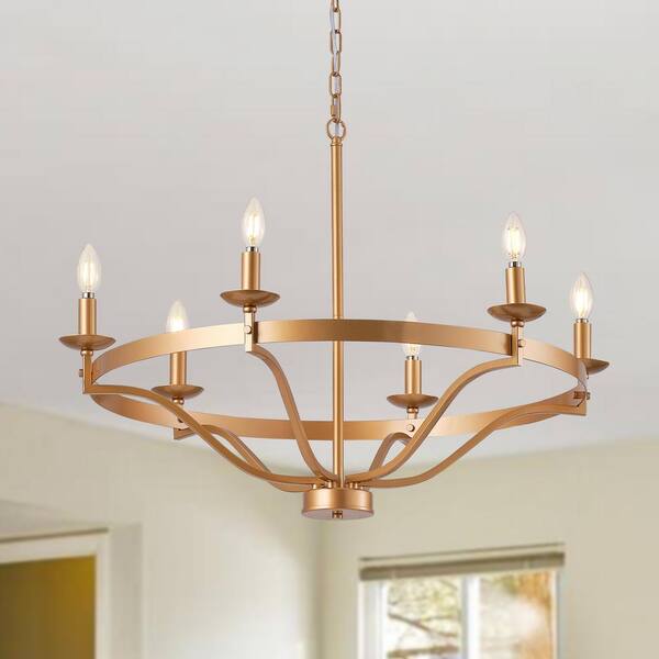 6-Light Spray Gold Dimmable Wagon Wheel Chandelier for Foyer with No Bulbs Included