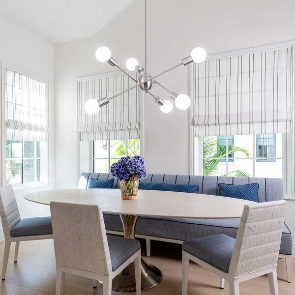 6-Light Sputnik Nickel Chandelier for Living Room Bedroom with No Bulbs Included