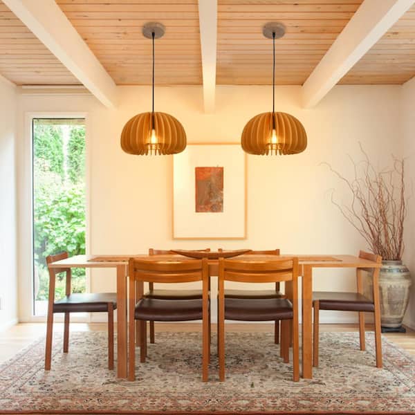 60-Watt 1-Light Brown Medium Sized Pendant Light with Pumpkin Shape, No Bulbs Included