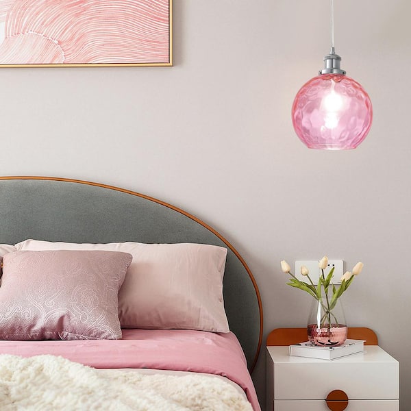 60-Watt 1-Light Gold and Pink Shaded Pendant Light with Globe Glass Shade, No Bulbs Included