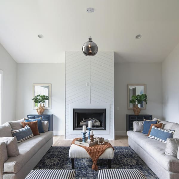60-Watt 1-Light Gold and Smoke Gray Shaded Pendant Light with Globe Glass Shade, No Bulbs Included