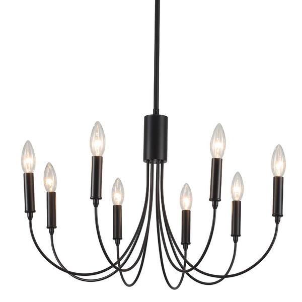 8-Light Black Classic Linear Chandelier for Kitchen Island with no Bulbs Included