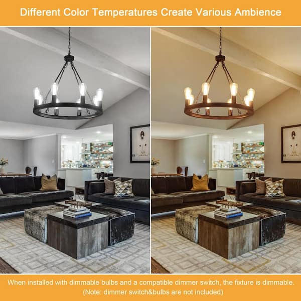 8-Light Black Modern Chandelier Wagon Wheel Chandelier for Living Room