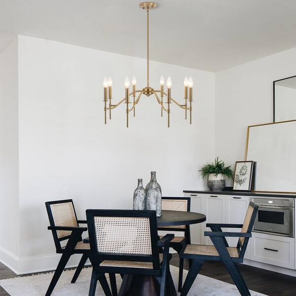 • Brass farmhouse chandelier with traditional candle design