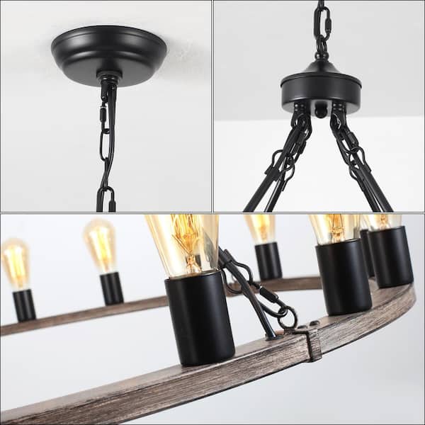 Loughlam 20-Light Black/Brown Farmhouse Candle Style Wagon Wheel Chandelier for Living Room Kitchen Dining Room Foyer