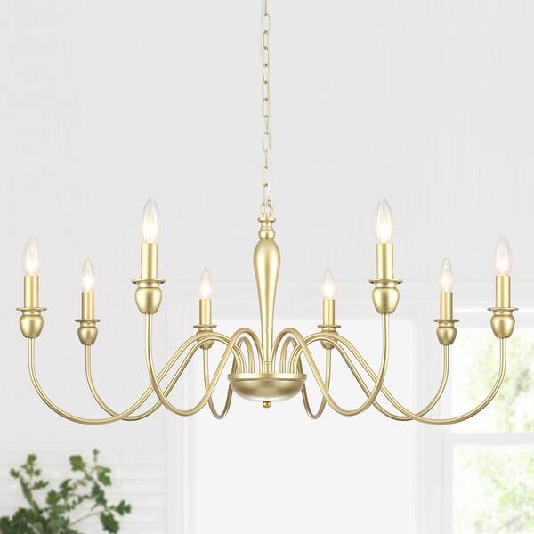 Marypaz 8-Light Spray Gold Dimmable Classic Traditional Farmhouse Chandelier for Kitchen Island with no Bulbs Included