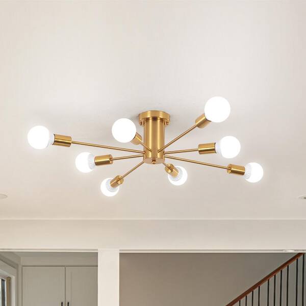 Trevontay 30.08 in. 8-Light Gold Modern Sputnik Sphere Semi Flush Mount for Dining Living Room Ceiling Light
