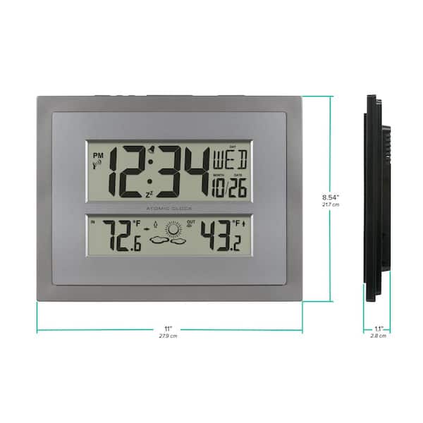 Atomic Digital Clock with Temperature and Forecast in Gray/Silver