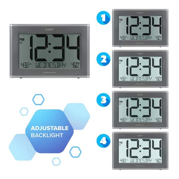 Extra-Large Slim Atomic Digital Cool Gray Clock with Backlight