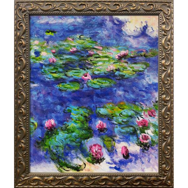 Water Lilies with Elegant Gold Frame by Claude Monet Framed Wall Art 30 in. x 26 in.