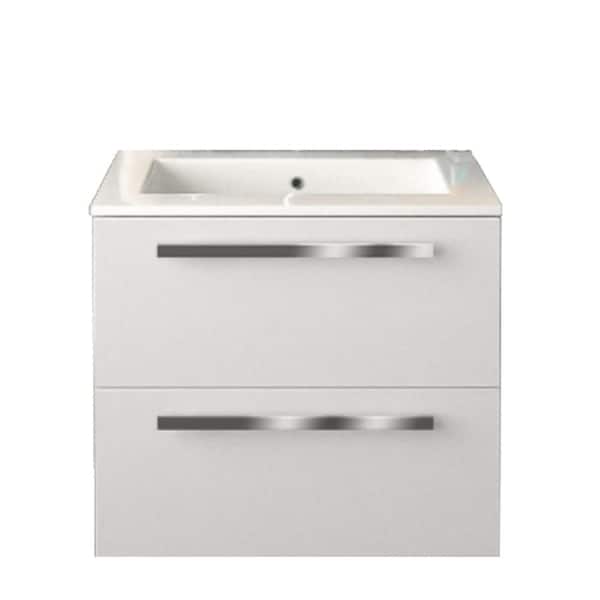 Ameno 24 in. W x 18 in. D x 20 in. H Floating Bath Vanity in White with White Tekorlux Vanity Top with Basin