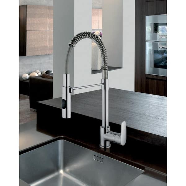Arena Single Handle Pull Down Sprayer Kitchen Faucet with Spring Spout in Chrome
