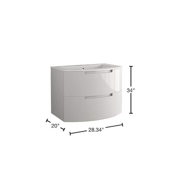 Oasi 29 in. Vanity in Glossy White with Tekorlux Vanity Top in White with White Basin
