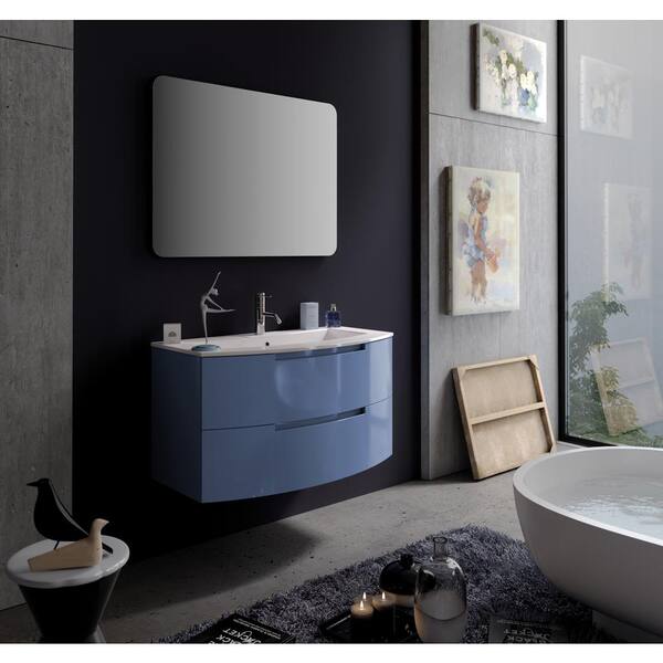 Oasi 39 in. Bath Vanity in Glossy Slate with Tekorlux Vanity Top in White with White Basin