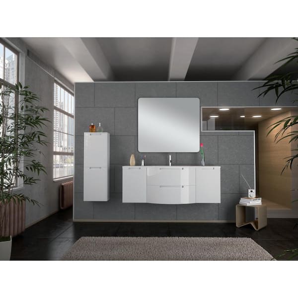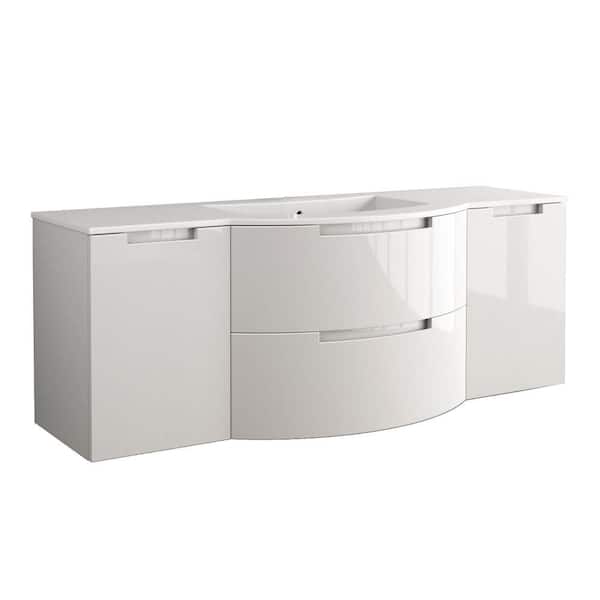 Oasi 57 in. Bath Vanity in Glossy White with Tekorlux Vanity Top in White with White Basin