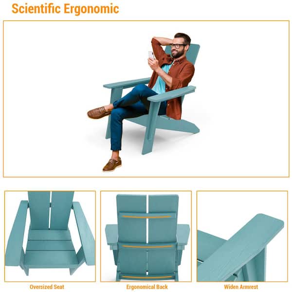 Lake Blue Outdoor Plastic Adirondack Chair Patio Single Chair 300 lbs. for Deck and Balcony Multi-Use