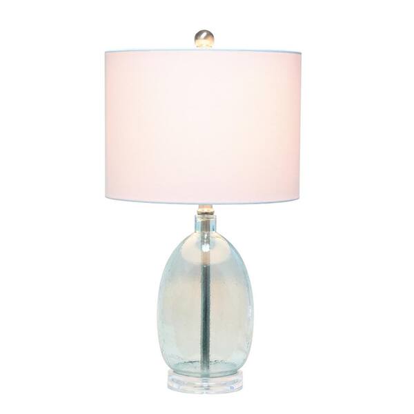 22 in. Clear Blue Oval Glass Table Lamp with White Drum Shade