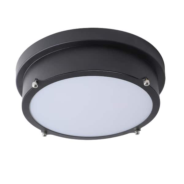 11 in. 12-Watt Black Round Integrated LED Flush Mount Light with Acrylic Drum Shade