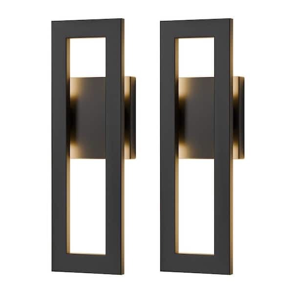 14.4 in. Matte Black LED Outdoor Hardwired Wall Lantern Sconce (2-Pack)