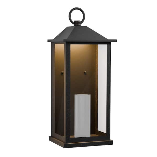 14 in. Black Integrated LED Outdoor Hardwired Wall Lantern Sconce with Clear Glass