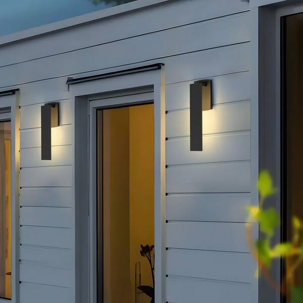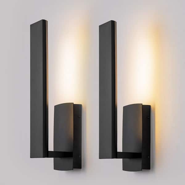 16.1 in. Black LED Outdoor Hardwired Wall Lantern Sconce Integrated LED (2-Pack)
