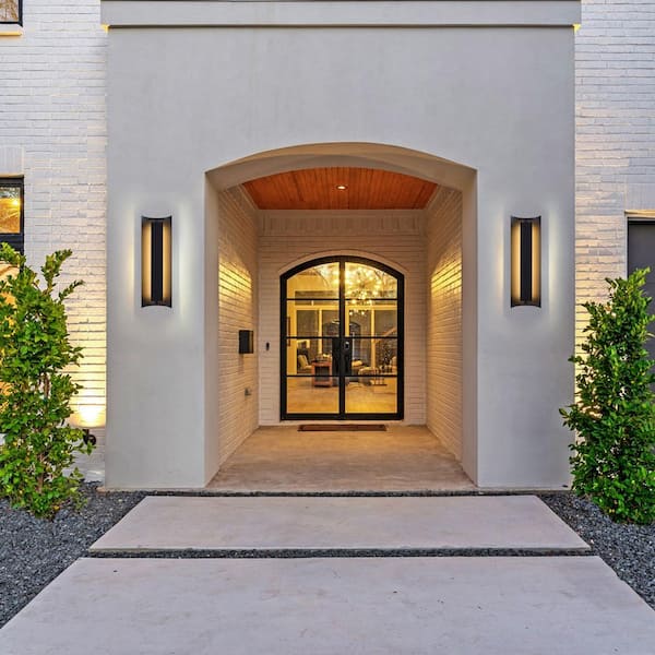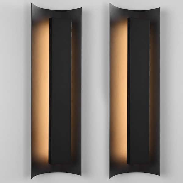 19 in. Black Rectangle Outdoor Integrated LED Wall Lantern Sconce(2-Pack)