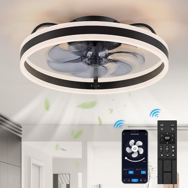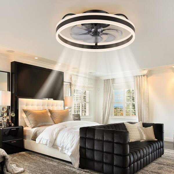 20 in. Indoor Integrated LED Black Ceiling Fan with Light with Acrylic Lampshade and Remote Included