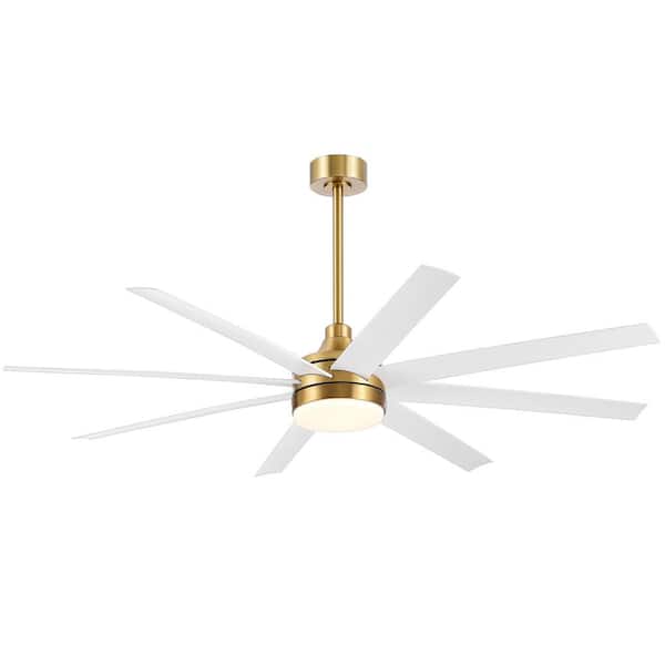 Aaron 65 in. Integrated LED Indoor White-Blade Gold Ceiling Fans with Light and Remote Control Included