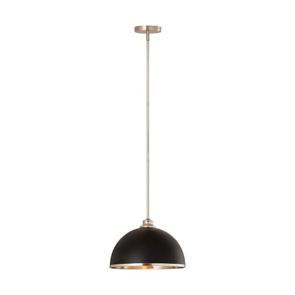 Landry 1-Light Matte Black + Brushed Nickel Pendant with Matte Black + Brushed Nickel Glass Shade