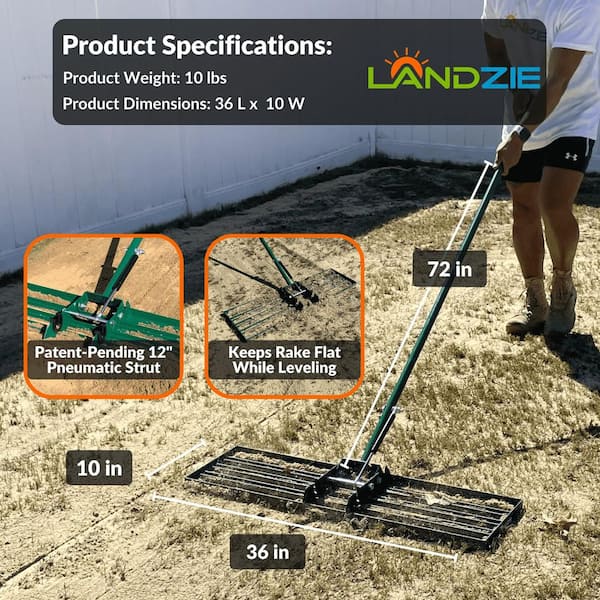 Aero Leveler Lawn Leveling Rake - Patent Pending 36 in. Wide Pneumatic Lawn Leveler Leveling Rake