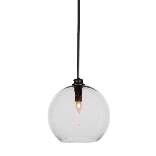 Langdale 60-Watt 1-Light Matte Black Shaded Mini Pendant Light with Glass Shade