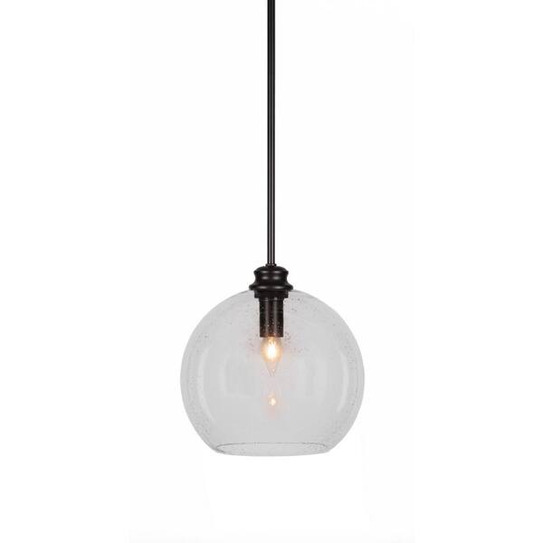 Langdale 60-Watt 1-Light Matte Black Shaded Mini Pendant Light with Glass Shade