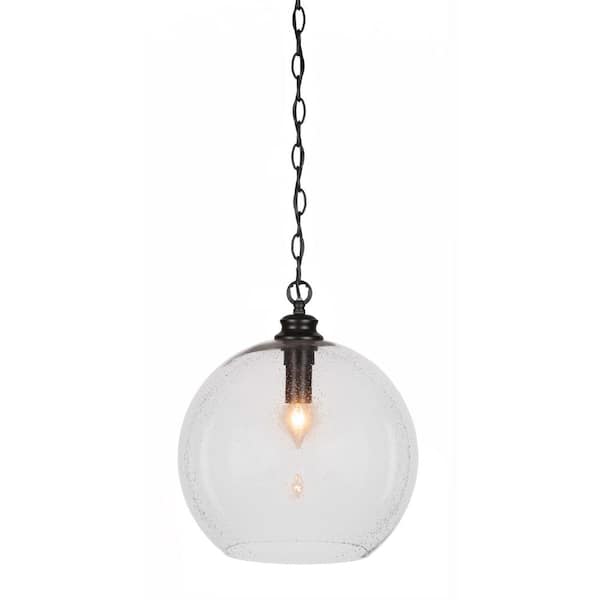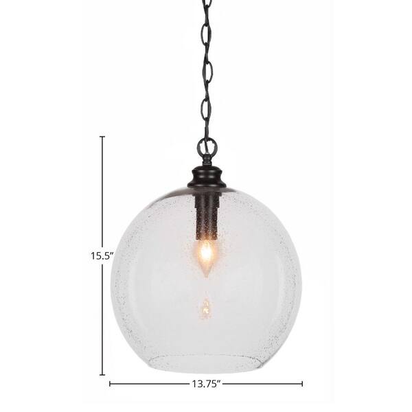 Langdale 60-Watt 1-Light Matte Black Shaded Pendant Light with 13.75 in. Clear Bubble Glass Shade, No Bulb Included