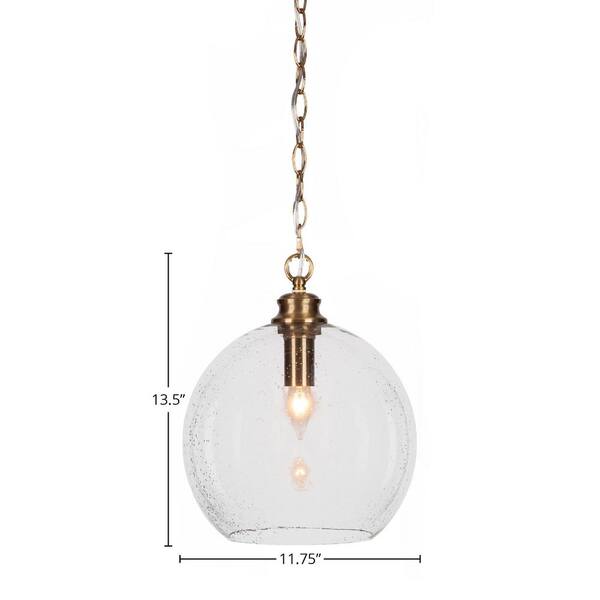 Langdale 60-Watt 1-Light New Age Brass Shaded Pendant Light with 11.75 in. Clear Bubble Glass Shade, No Bulb Included