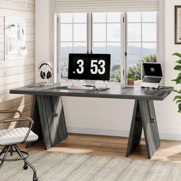 Lanita 63 in. Rectangular Gray Wood Executive Desk with Sturdy Base, Workstation Study Writing Table for Home Office