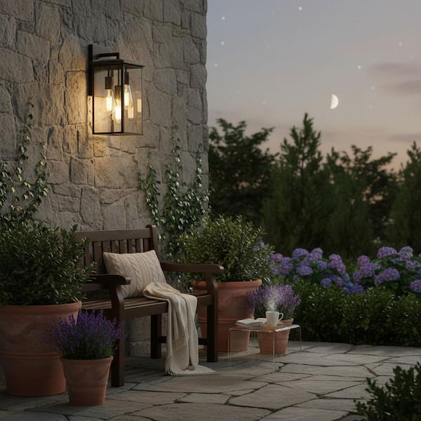 Large 3-Light Bronze Outdoor Wall Lantern Sconce
