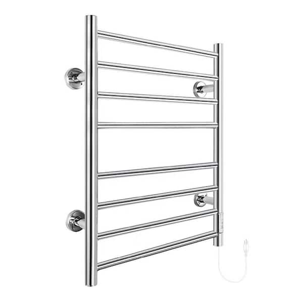 Large 80W 8-Bar Design Stainless Steel Screw-In Towel Warmer Rack in Silver for Fast Heating