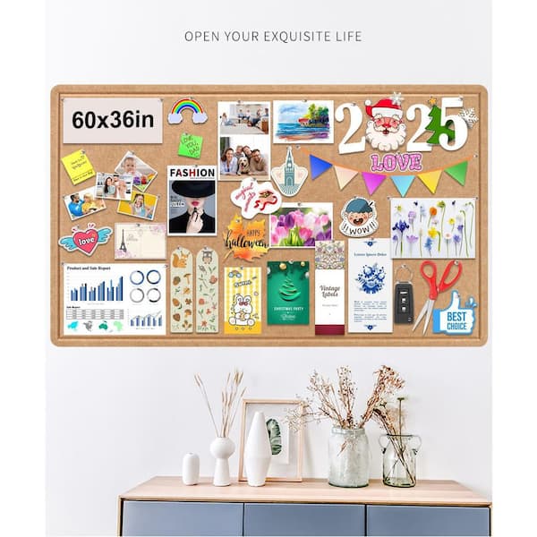 Large Foldable 60x36 Inches Felt Bulletin Board Decorative Pin Board for Wall with 36 Pushpins Brown