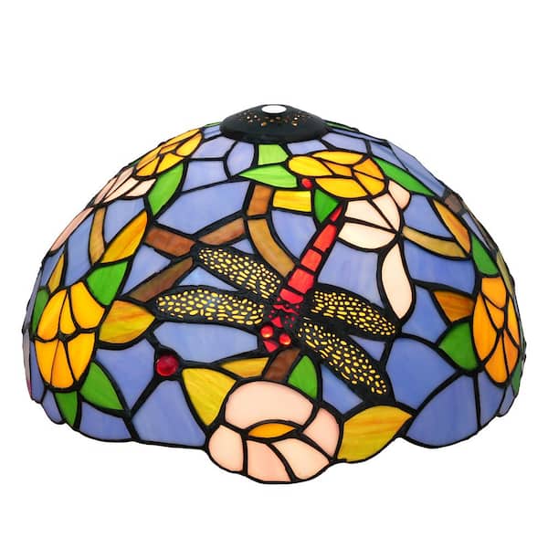 12 in. Dia x 7 in. H Tiffany Style Stained Glass Dome Table Lamp Shade with No Fitter