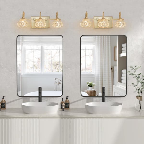 17 in. 3-Light Gold Vanity Lights Fixture with Clear Crystal Shades and No Bulbs Included