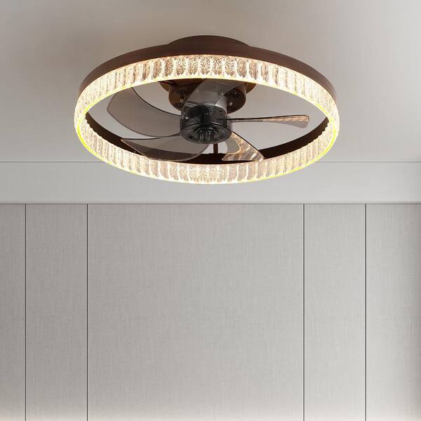 19.7 in. LED Indoor Brown Bladeless Low Profile Ceiling Fan Flush Mount Smart App Remote Control Dimmable Lighting