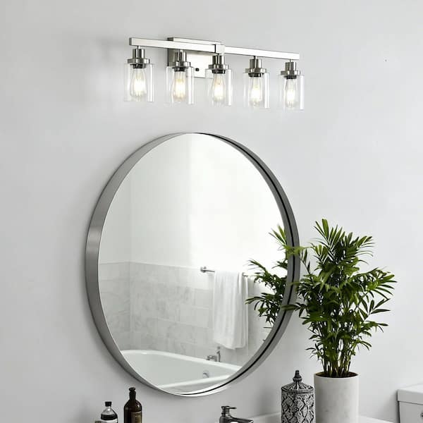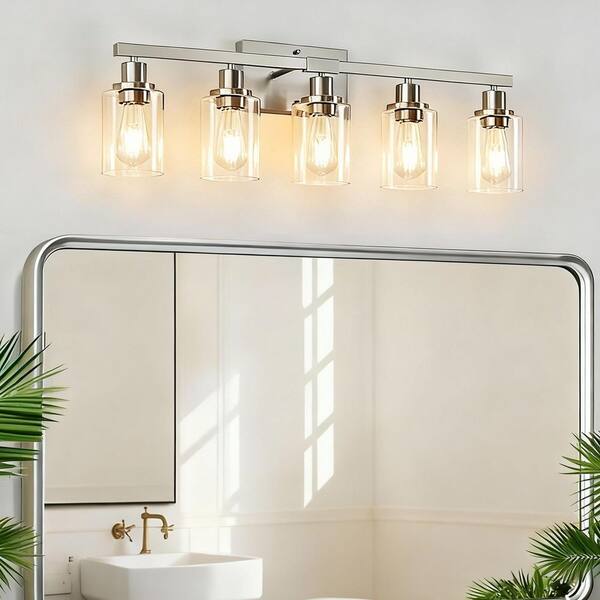 30 in. 5-Light Brushed Nickel Vanity Lights Fixture with Clear Glass Shades and No Bulbs Included