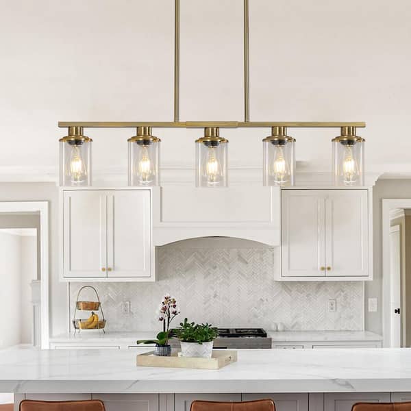 5-Light Gold Luxury Pendant Light Chandelier with Clear Glass Shades with No Bulbs Included
