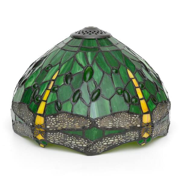 7.5 in. Green Stained Glass Dome Table Lamp Shade with No Fitter