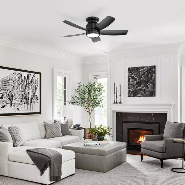 Kebris 42 in. Indoor/Outdoor Black Low Profile Flush Mount Integrated LED Ceiling Fan with Light Kit and Remote Control