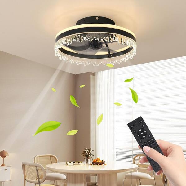 Virella 16 in. LED Indoor Black Crystal Bladeless Low Profile Ceiling Fan Flush Mount Smart App Remote Control, Dimmable